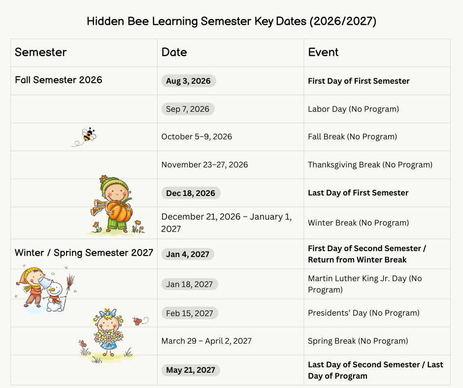 Fall 2026–2027 Programs at Hidden Bee Learning